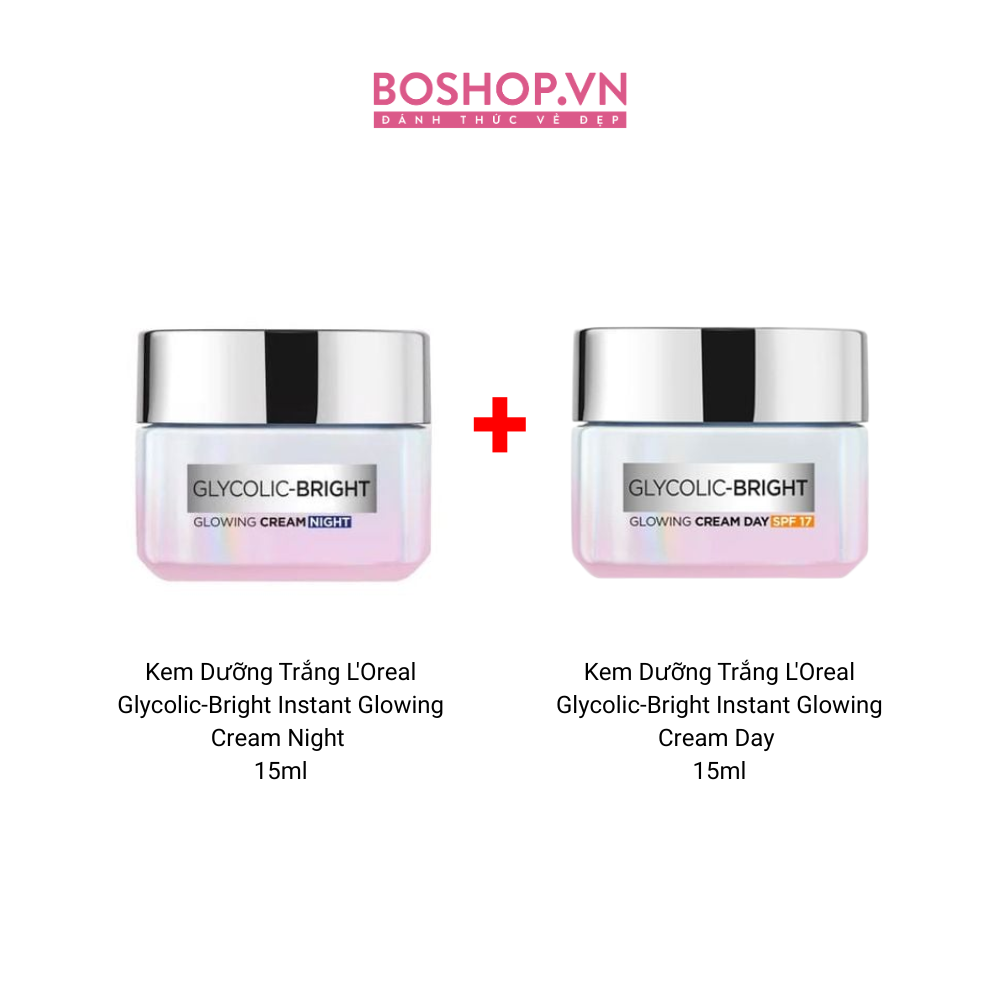 Combo 2 Kem Dưỡng Trắng L'Oreal Glycolic-Bright Instant Glowing Ngày & Đêm 15ml (8935274645096 - 8935274645089)